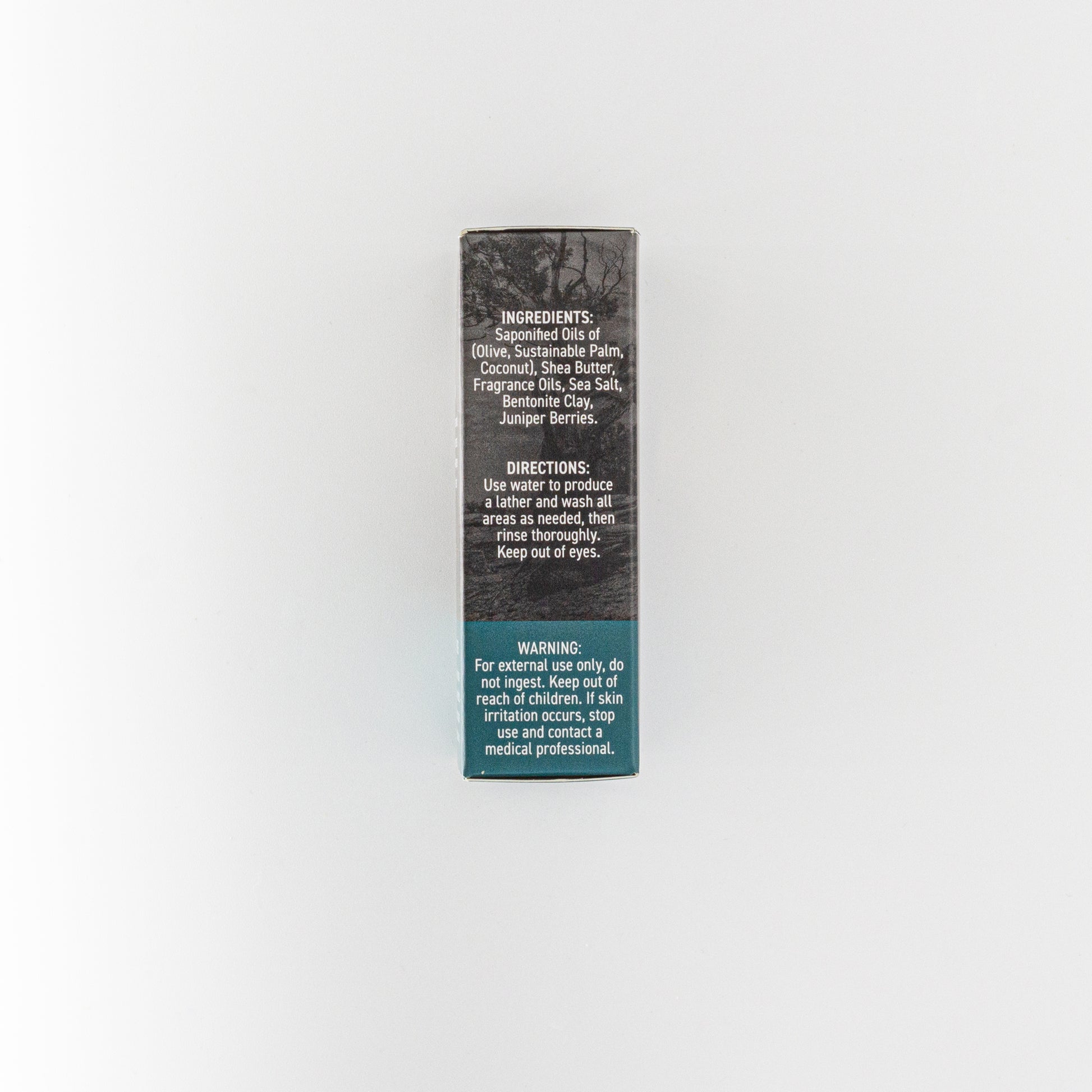 Saponified Oils of (Olive, Sustainable Palm, Coconut), Shea Butter, Fragrance Oils, Sea Salt, Bentonite Clay, Juniper Berries.